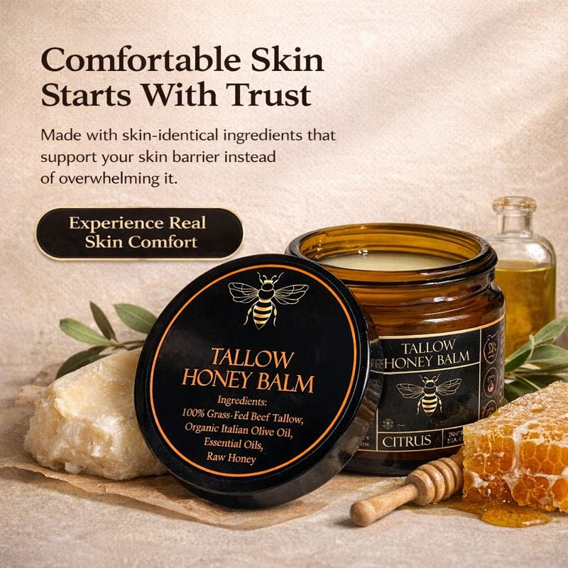 Combined with raw honey and organic olive oil, this balm delivers comfort, protection, and long-term skin support — without harsh actives or synthetic additives.